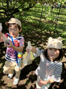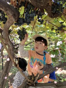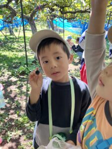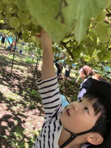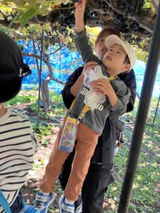 「大きいのあった!!」「緑のぶどうあった!」と話しながら、自分の手でぶどうを選び、収穫を楽しんでいました😆