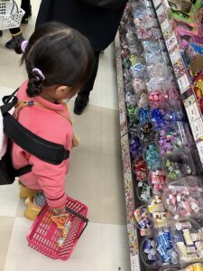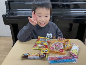 子どもたちは300円をしっかりと持ち、ワクワクした表情で駄菓子屋さんへ😊