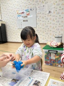 自分で作ったスライムが完成すると、「みてみてー!」と嬉しそうに見せてくれました😊✨
