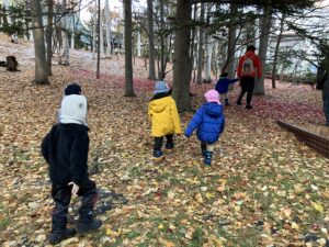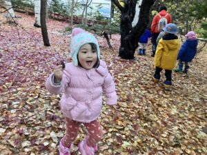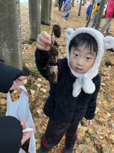 拾ったまつぼっくりを袋に入れたり、友だちと見せ合ったりしながら、秋ならではの自然にたくさん触れることができました🌟