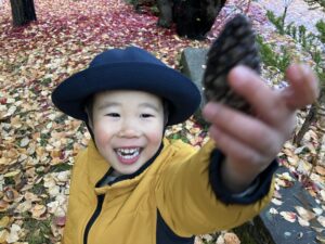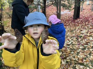 しゃがんでよく観察しながら、いろいろな形や大きさのまつぼっくりを見つけていました👀✨