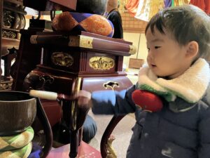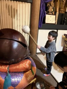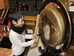 木魚やりん、太鼓など様々な大きさのものを、特別に自由に触って良いということで、