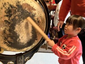 叩くと「ぽくっ」「どん!」と音が違い、子どもたちは音の変化を楽しんでいました🎵