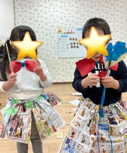 スカートやリボンを作ってお洋服にしたり、スリッパを作ったりと、それぞれの発想がとても豊かでした🎀✨