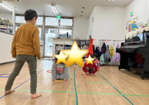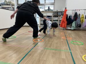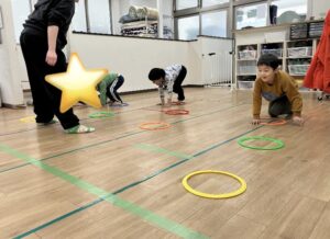 ねずみ役のお友だちは、手足を床につけた“四つん這い”の姿勢で進みます🐀